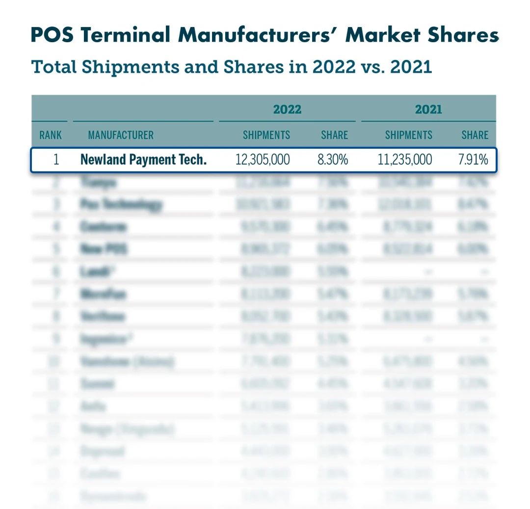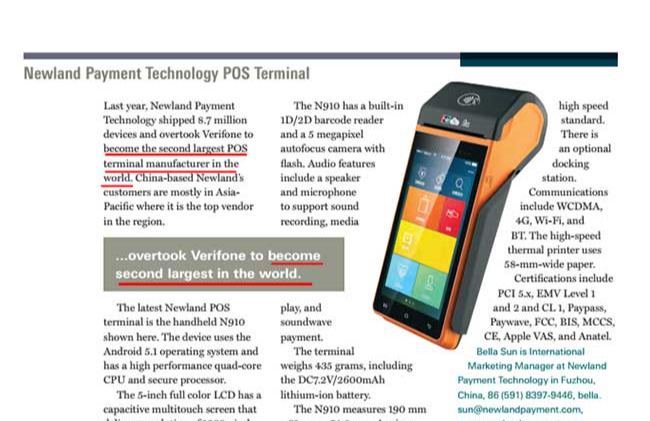 POS机出货量全球第一(尼尔森报告)