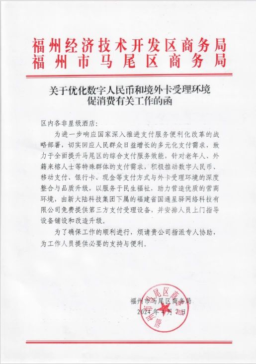 Recently, the General Office of the State Council has issued the "Opinions on Further Optimizing Payment Services and Enhancing Payment Convenience", which emphasizes the need to better accommodate the payment needs of foreign nationals residing in China and improve international payment service arrangements to boost payment convenience for them. As a leading third-party payment platform in China, Newland Guotong Xingyi has actively responded to the national strategic deployment to advance the facilitation reform of payment services. Working with the Mawei District Bureau of Commerce in Fuzhou, the Company is focused on the payment needs of foreign nationals in Fuzhou. To this end, Newland Guotong Xingyi is spearheading the creation of a Mawei Foreign-related Payment Demonstration Zone, in order to eliminate bottlenecks in payment services, speed up foreign-related payment services, and better meet the daily payment needs of foreign nationals in China.