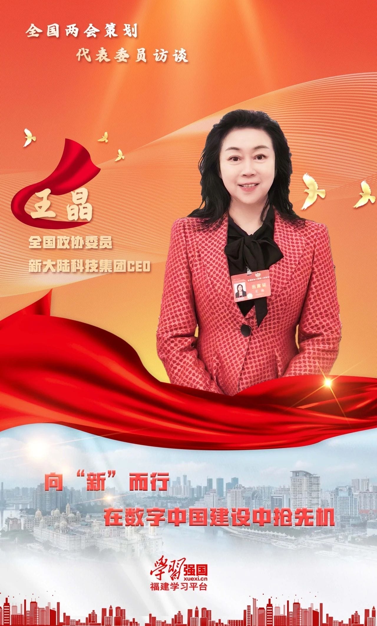 作为数字中国策源地和民营经济发轫地之一的福建,民营企业如何加快推进新技术在各行各业的应用和赋能,如何以新质生产力为新引擎推动经济高质量发展?时值全国政协十四届二次会议,“学习强国”福建学习平台记者专访了全国政协委员、金年会科技集团CEO王晶。