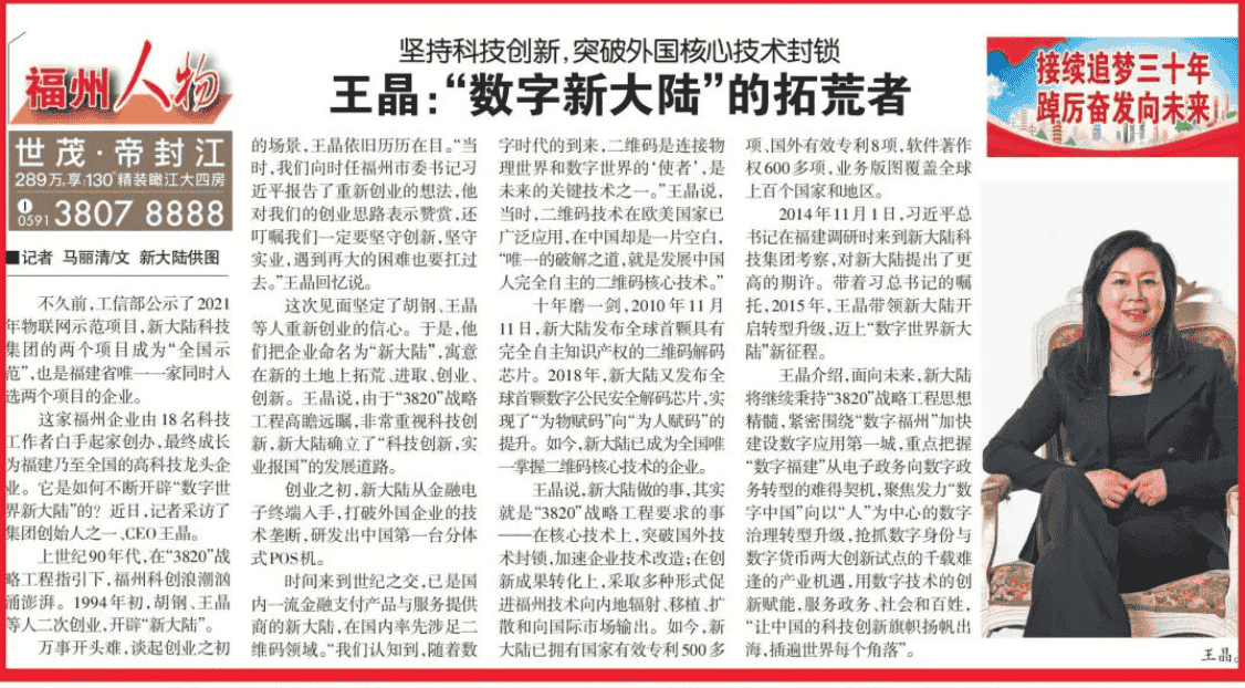 福州晚报5月22日发表专题报道《王晶:“数字金年会”的拓荒者》,学习强国平台转发,金年会科技集团官微今日全文刊发,以飨读者。